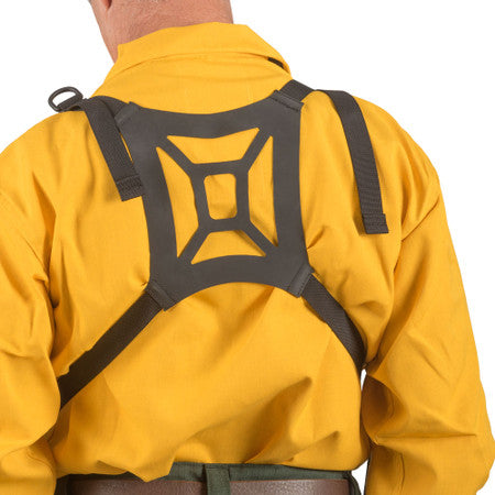 The Dozer™ is designed to hold a new generation fire shelter, radio (fits any size), and spare battery where it's easily accessed yet still out of the way. The pack sits comfortably on your chest without sagging or swinging due to the unique internal suspension system.